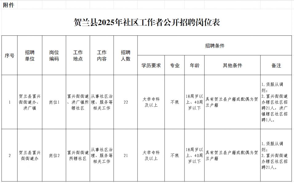 附件:贺兰县2025年社区工作者公开招聘岗位表
